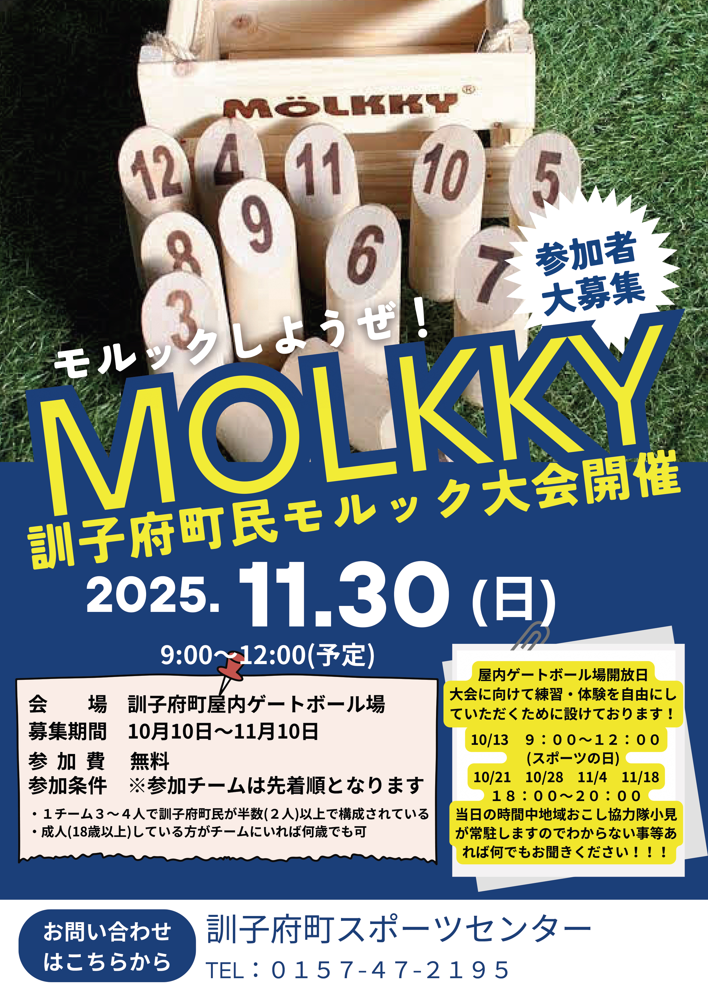 申込み・問合せ:訓子府町スポーツセンター(℡47-2195)